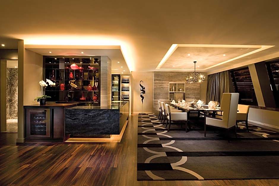 110 sq. m. suite, Executive Lounge access, separate living room and kitchen, marble bathroom. Make yourself at home in this large suite with kitchen, living room and dining area. This room features access to the Executive Lounge, offering drinks and evening cocktails. Keep in touch with friends using WiFi, or enjoy a film on the 55-inch TV. Relax in the deep-soak bathtub after a long day.