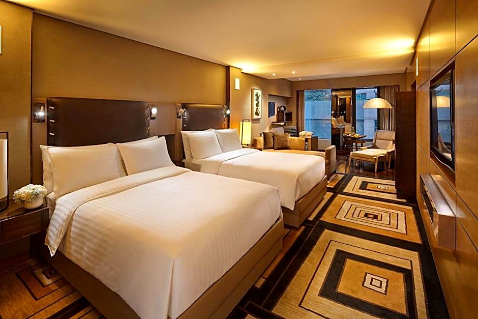 65 sq. m. room, marble bathroom, rain shower, deep bathtub, walk-in closet, WiFi, 55-inch TV. Stretch out in this spacious twin deluxe room with comfortable amenities, such as WiFi access, walk-in closet and espresso machine. Work in the separate work/relaxation area, or unwind in the deep-soaking bathtub or rain shower.